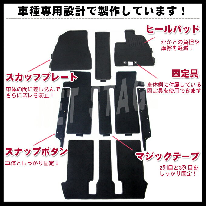 車種専用設計・裏面滑り止め加工・ヒールパッド有り 運転席・助手席・後部座席のセット(1台分)です! ※当車種は車体側についているため金具は付属いたしません。