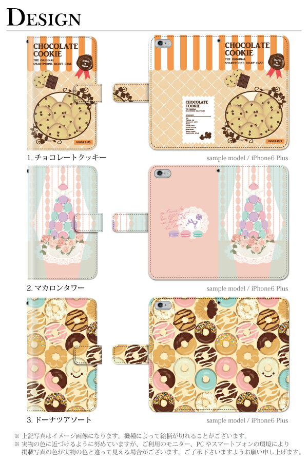 クッキー、チョコレート、マカロン、ドーナツ、ケーキ、アイスクリーム等の 手帳型 ダイアリーケース。