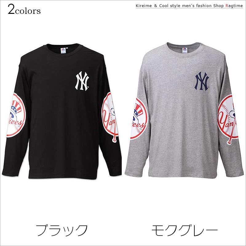 商品説明 左胸のニューヨーク・ヤンキースのロゴプリントや、左右袖部の野球ボールデザインプリントが目を引く長袖Tシャツ。