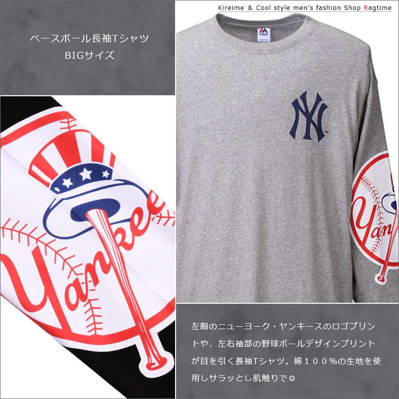 BIGサイズ 野球 Tシャツ 長袖 カットソー NY ヤンキース プリント メンズ C290830-14