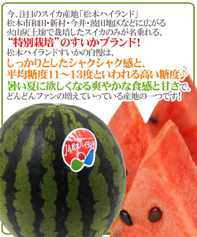 【送料無料】長野県 ”松本ハイランドすいか” 訳あり 約10〜11kg以上【予約 7月下旬以降】